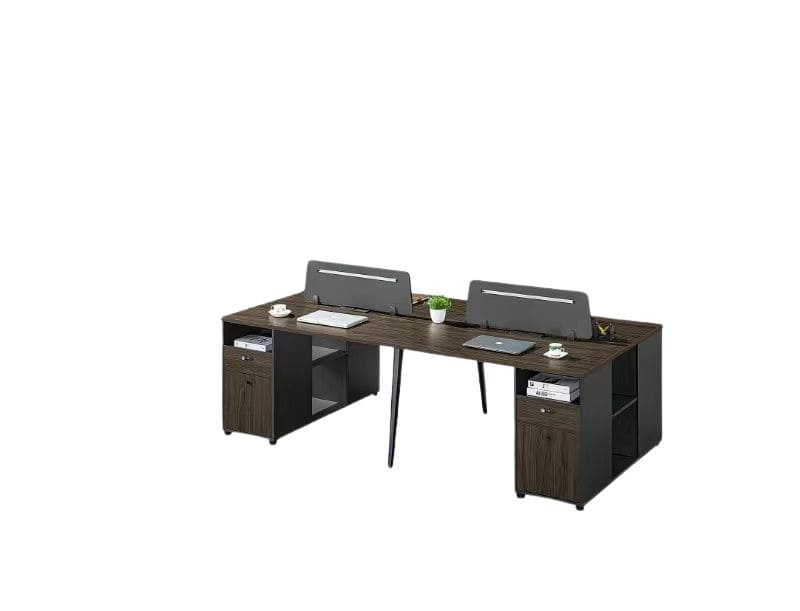 To ensure a completely clutter-free environment, this comprehensive desk system integrates substantial storage solutions at both ends. It features X 4 built in drawers alongside spacious lower cabinets and open shelving compartments. With generous overall dimensions of 2400 x 1200 x 750 mm, this workstation offers ample surface area for four professionals while maintaining an organized, streamlined footprint in your office layout.