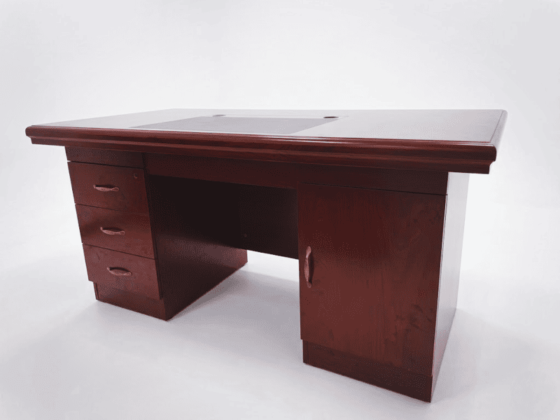 Designed with the modern executive’s needs in mind, the desktop is enhanced with leather in lays, providing a soft, durable writing surface that protects the wood and adds a premium tactile experience. Whether you are managing global logistics or architectural projects, the 1600 x 800 x 760 dimensions offer a substantial workspace without overwhelming your room. Efficiency is built directly into the design, as the desk features in built 3 drawers on high-quality glides, ensuring that your private files and daily stationery are always within reach but out of sight.